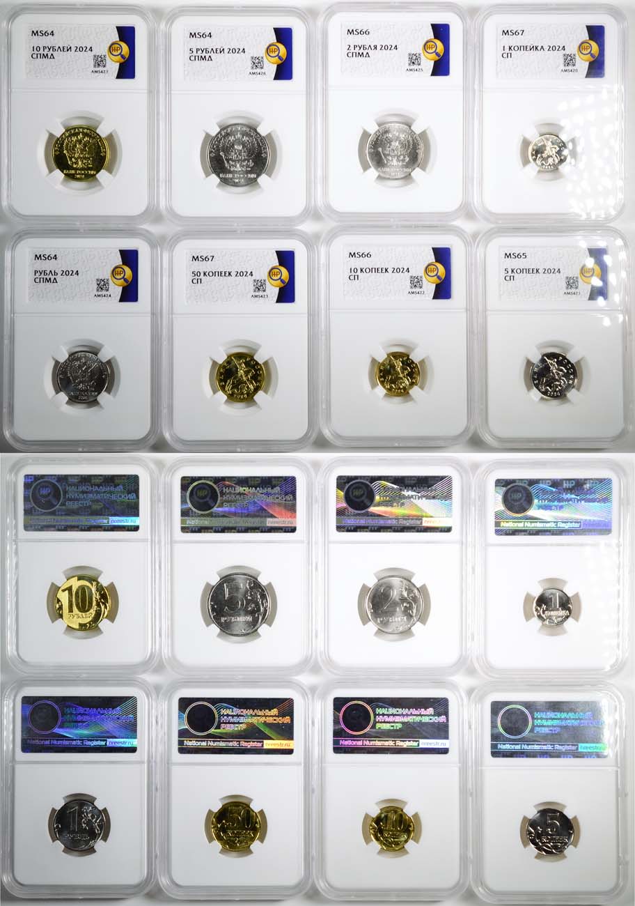 10 рублей 2024 года. СПМД. ННР MS 64. 5 рублей 2024 года. СПМД. ННР MS 64. 2 рубля 2024 года. СПМД. ННР MS 66. 1 рубль 2024 года. СПМД. ННР MS 64. 50 копеек 2024 года. СПМД. ННР MS 67. 10 копеек 2024 года. СПМД. ННР MS 66. 5 копеек 2024 года. СПМД. ННР MS 65. 1 копейка 2024 года. СПМД. ННР MS 67.