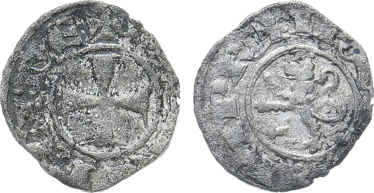 Серебро. 0,6г. Аверс: крест внутри окружности; легенда "hENRI REI DE". Реверс: лев влево внутри окружности; легенда "IRLM ED ChIPR". VF/XF.