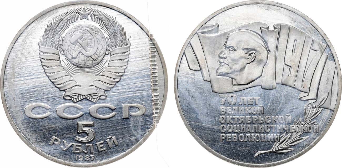 Медно-никелевый сплав. 30,23г. Ленинградский монетный двор. Реверс: цифра "7" в нижней части касается цифры "1". Широков, Сорокин, Золотарев 29.7(П). PROOF.