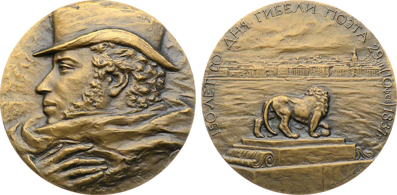 Томпак. 113,03г. Диаметр 60 мм. Ленинградский монетный двор. Медальер М.Г. Сальман (на реверсе, внизу справа, на постаменте "М. Сальман ЛМД 1987"). Тираж 1250 экз. Шкурко, Салыков 1739. UNC.