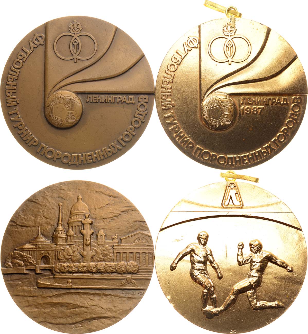 Томпак, золочение. 124,55г. СССР. Медаль 1987 года. Томпак, золочение. 124,55 г. Диаметр 60 мм. Ленинградский монетный двор. Без подписи медальера. С ушком. За первое место. UNC. СССР. Медаль. Томпак. 124,55 г. Диаметр 60 мм. Ленинградский монетный двор. Медальер А. Бакланов (на аверсе справа под линией обреза). Памятная. UNC.