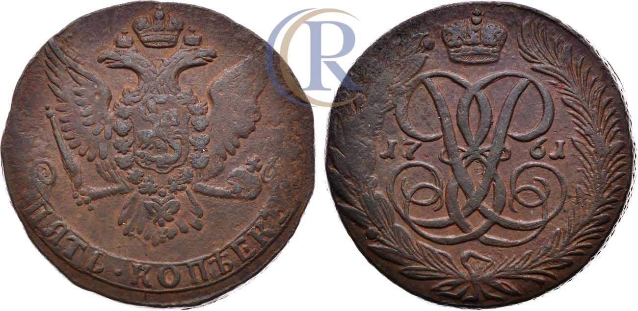 Довольно высокая сохранность для 5-ти копеек Елизаветы Петровны 1761 года чекана.