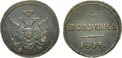 Медь. 1г. Набережный монетный двор. Аверс: императорские короны. Реверс: год славянскими буквами. Ошибка в номинале: буквы номинала перепутаны местами: "ПУЛОШКА". Отсутствует у Узденикова, Биткина, Дьякова, Brekke, Ильина. Дьяков подобна 184, 3960. XF.