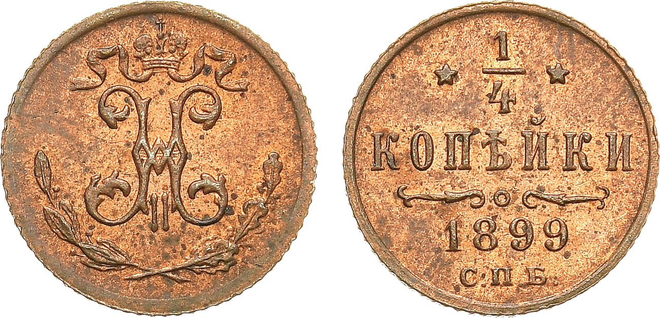 Медь. 0,82г. Завод Розенкранца в Санкт-Петербурге. Уздеников 3888. Биткин 310. Казаков 196. Brekke 274, 6. MS 65 RB.