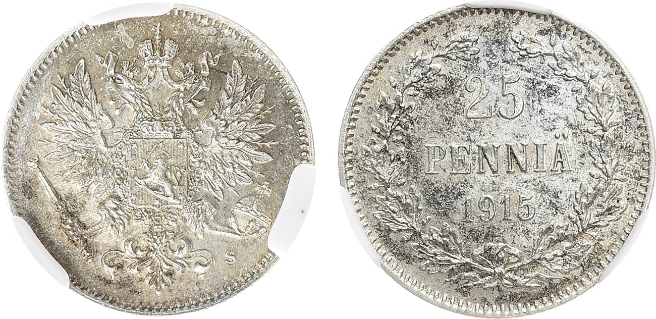 Серебро. Для Финляндии. Гельсингфорсский монетный двор. Уздеников 4826. Биткин 420. Казаков 491. MS 64.