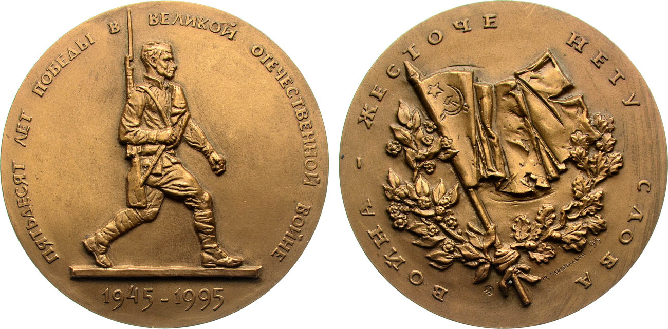Томпак. 130,49г. Диаметр 60 мм. Московский монетный двор. Медальер М. Переяславец (на реверсе внизу, под венков "М. ПЕРЕЯСЛАВЕЦ"). UNC.