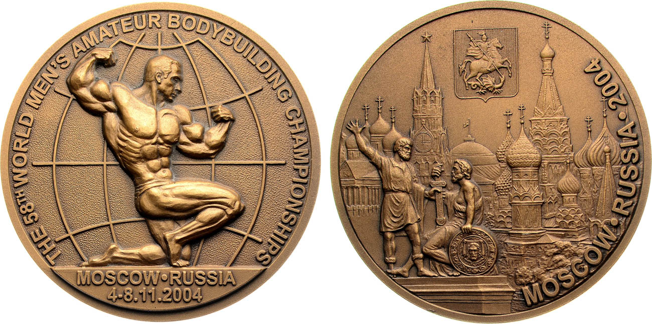Современная Россия Медаль 2004 года. 58-й мужской любительский чемпионат мира по бодибилдингу по версии Международной федерации бодибилдинга (IFBB), 4-8 ноября 2004 года, Москва.