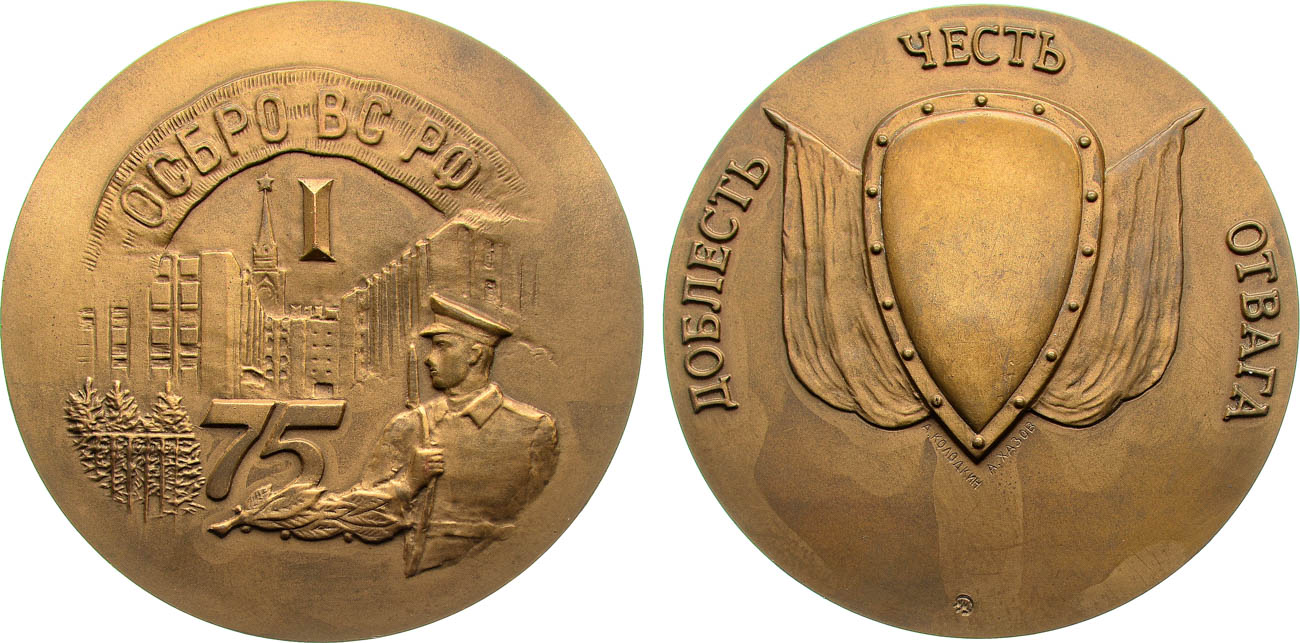 Томпак. 127,15г. Диаметр 60 мм. Московский монетный двор. Медальеры: А. Колодкин, А. Хазов (на реверсе справа под щитом "А. КОЛОДКИН", слева "А. ХАЗОВ"). UNC.