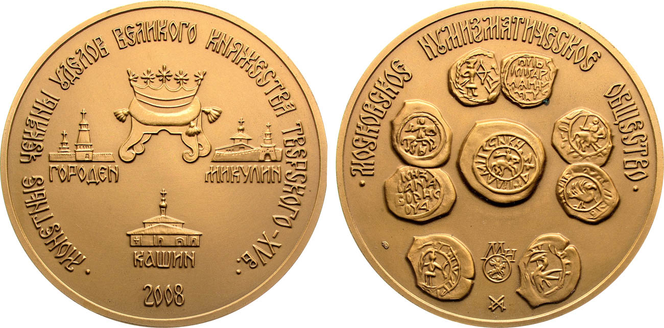 Современная Россия Медаль 2008 года. Московское Нумизматическое Общество (МНО). Монетные чеканы уделов Великого княжества Тверского XV в.