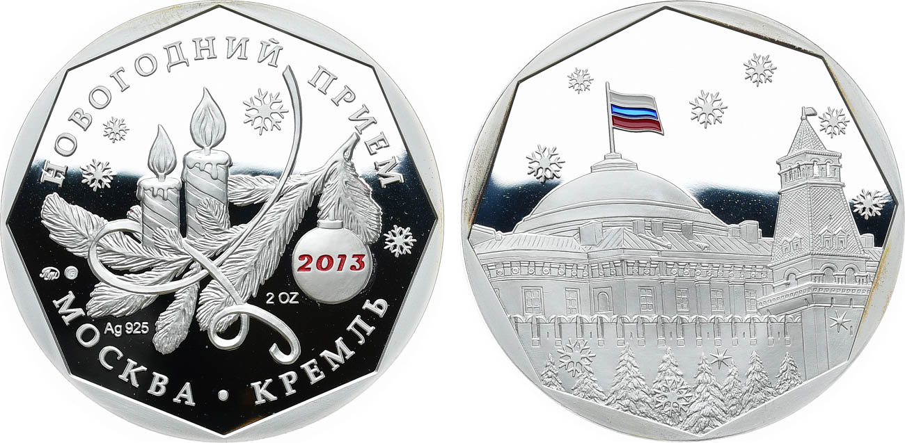 Серебро. 62,2г. Диаметр 50 мм. Московский монетный двор. Без подписи медальера. Цветная эмаль. Проба 925. Аверс: слева клейма: ММД. голова в кокошнике вправо. PROOF.