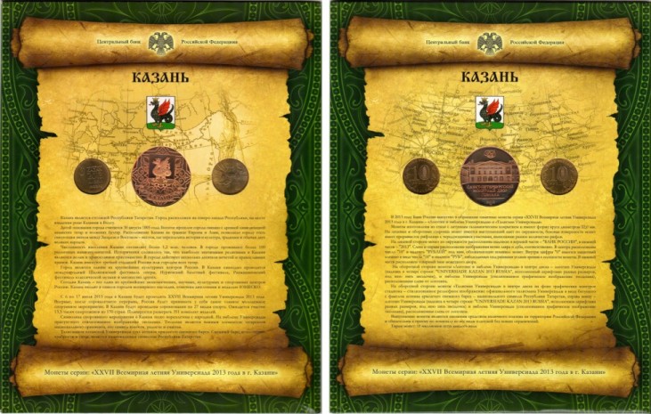 Современная Россия Набор монет 2013 года. "XXVII Всемирная летняя Универсиада 2013 года в г. Казани" из 3 шт. (2 шт. 10 рубль + жетон). СПМД..