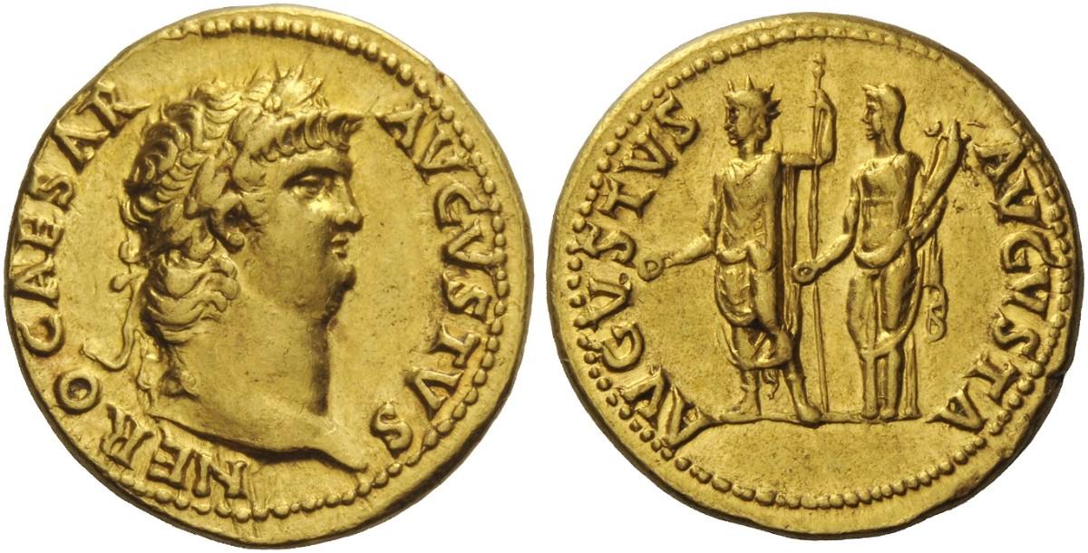 Фото - Аурей 50-54 гг. Клавдий и Нерон. Аукцион "Редкие Монеты" №18, лот 21.